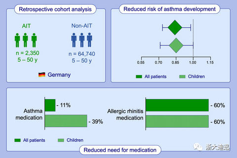 Methods: In this retrospective cohort analysis of a German longitudinal prescription database, patients who received at least two relevant mite AIT prescriptions in two different successive seasonal cycles were compared with non-AIT patients who received at least three symptomatic allergic rhinitis (AR) prescriptions in successive mite seasons. Study endpoints included AR progression, asthma progression, asthma occurrence, and therapy adherence. We used multivariate regression analyses to estimate the effects of AIT, adjusting for relevant variables.